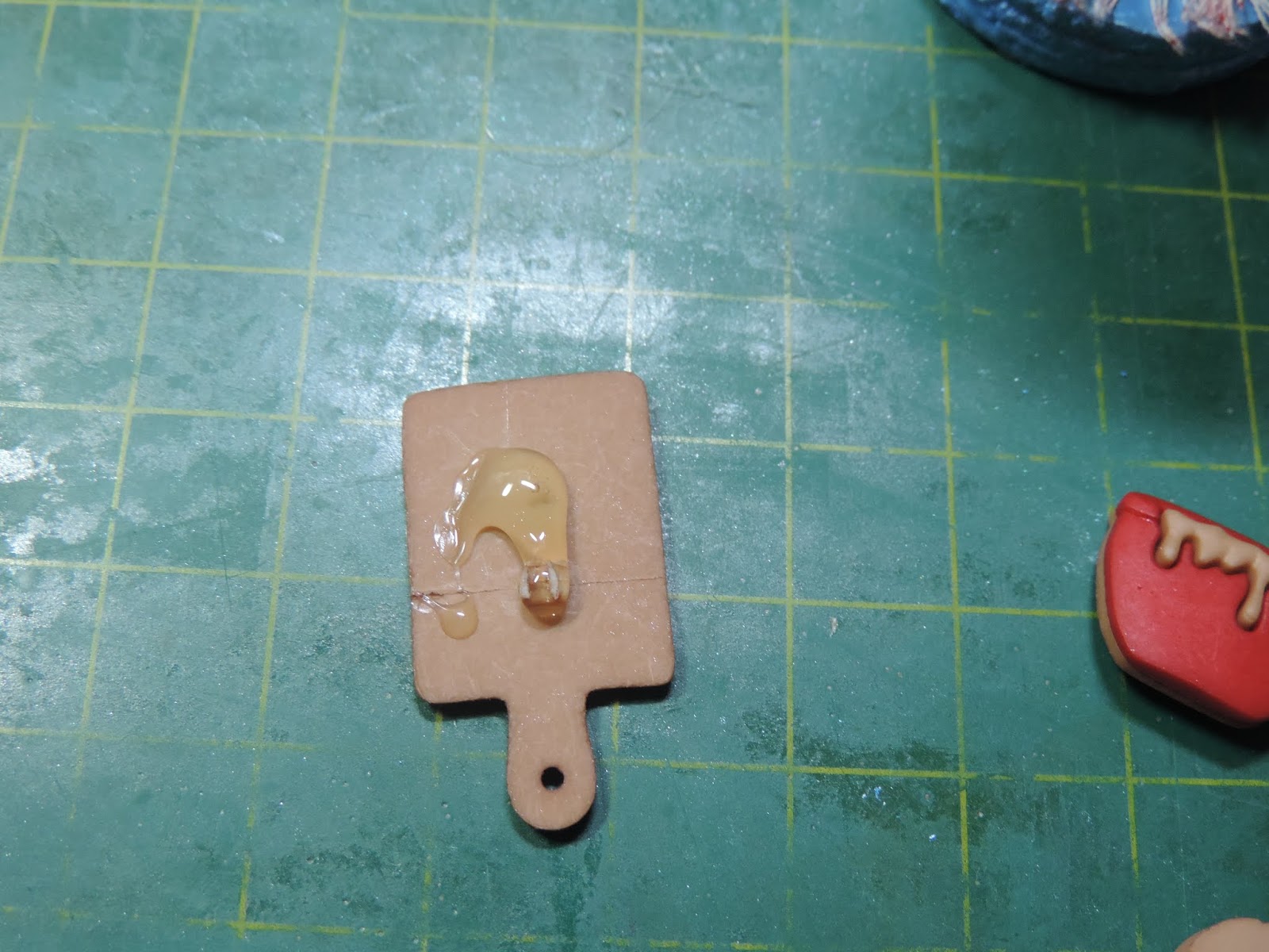 When I had enough of the cord pushed into the well, I put a last spot of hot glue on top so that the large pearl could be stuck there to cover that area.